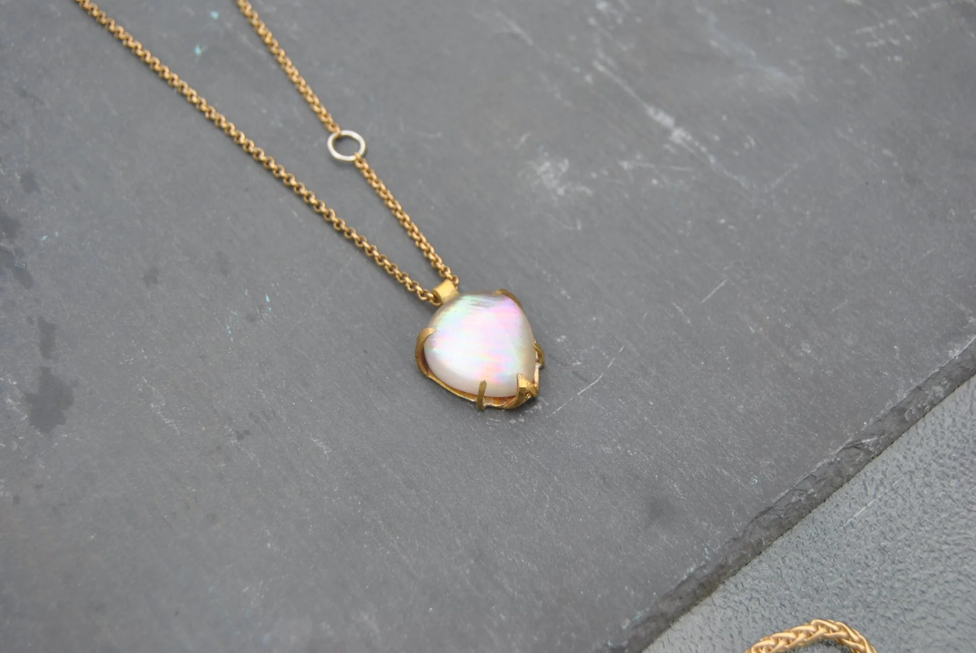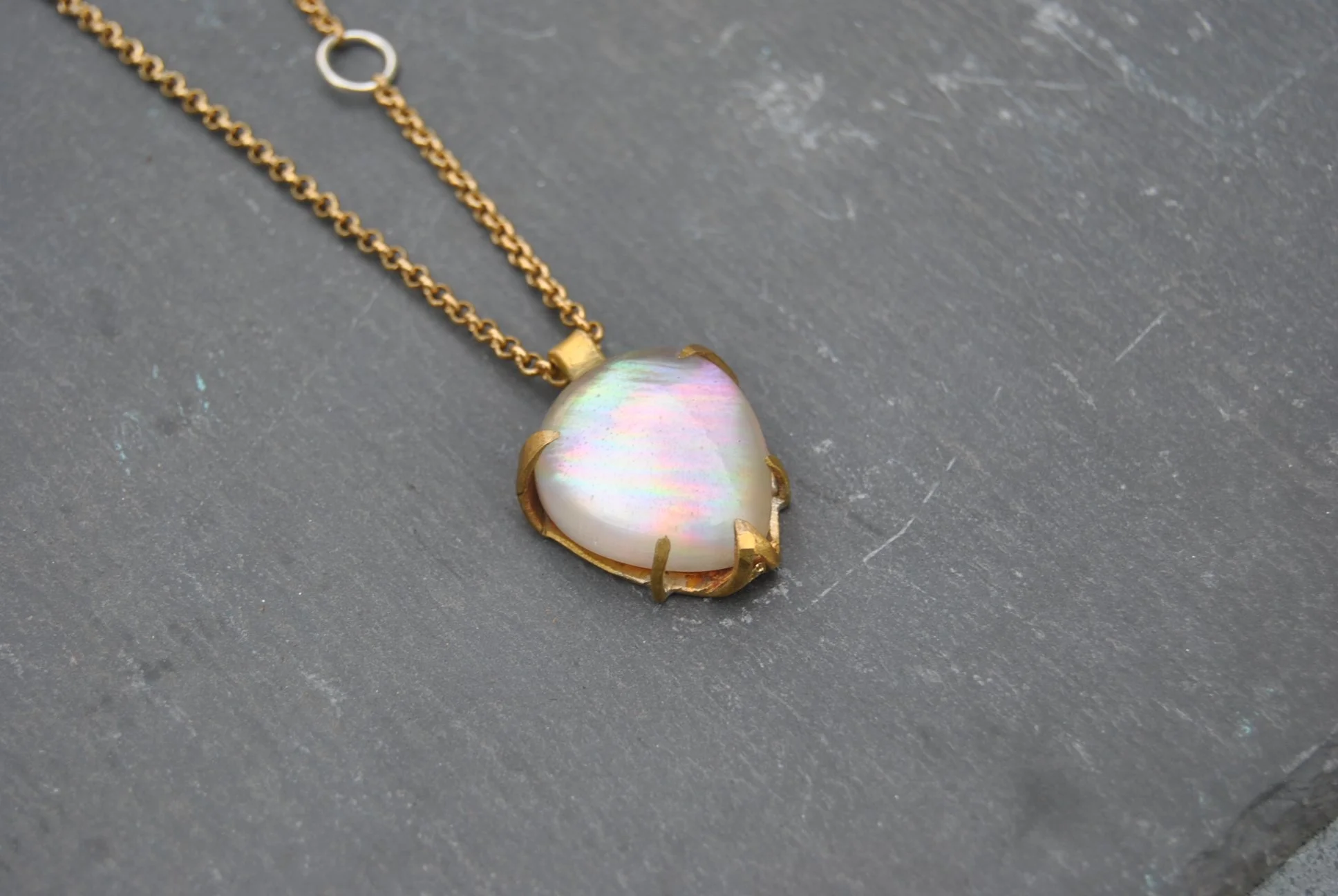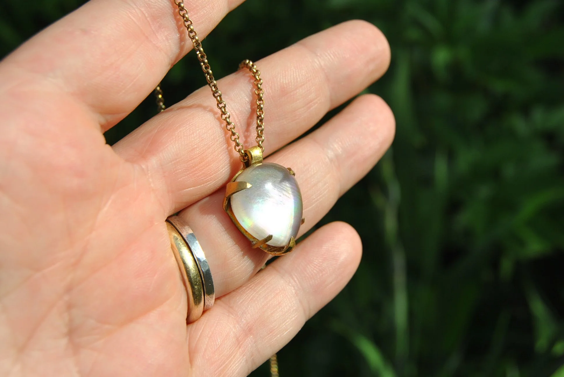 Found Ceramic set in Brass Prong Pendant