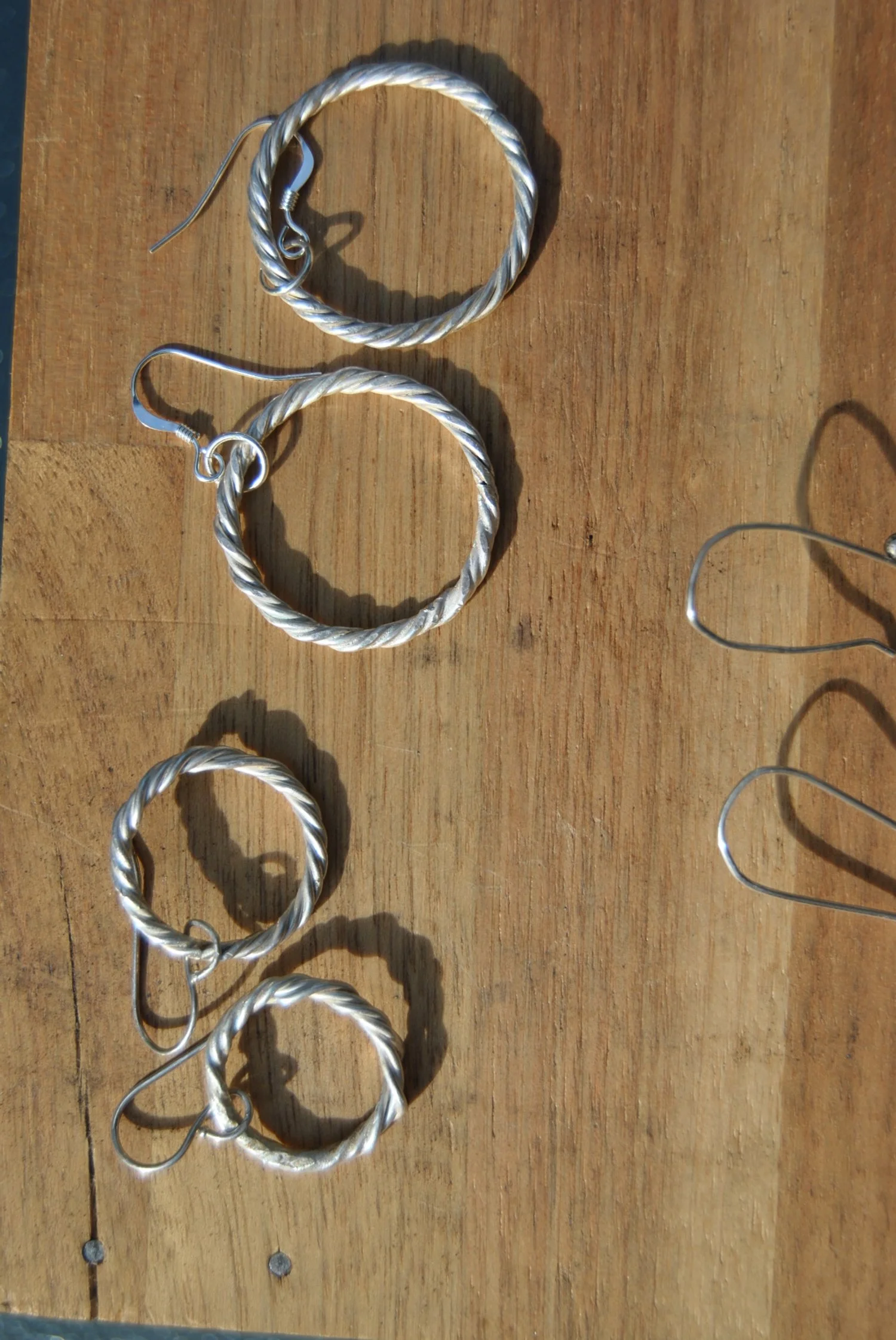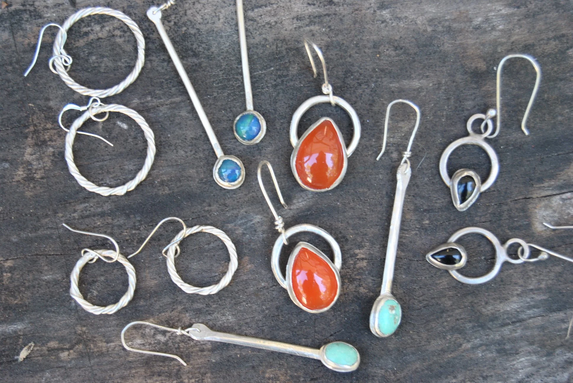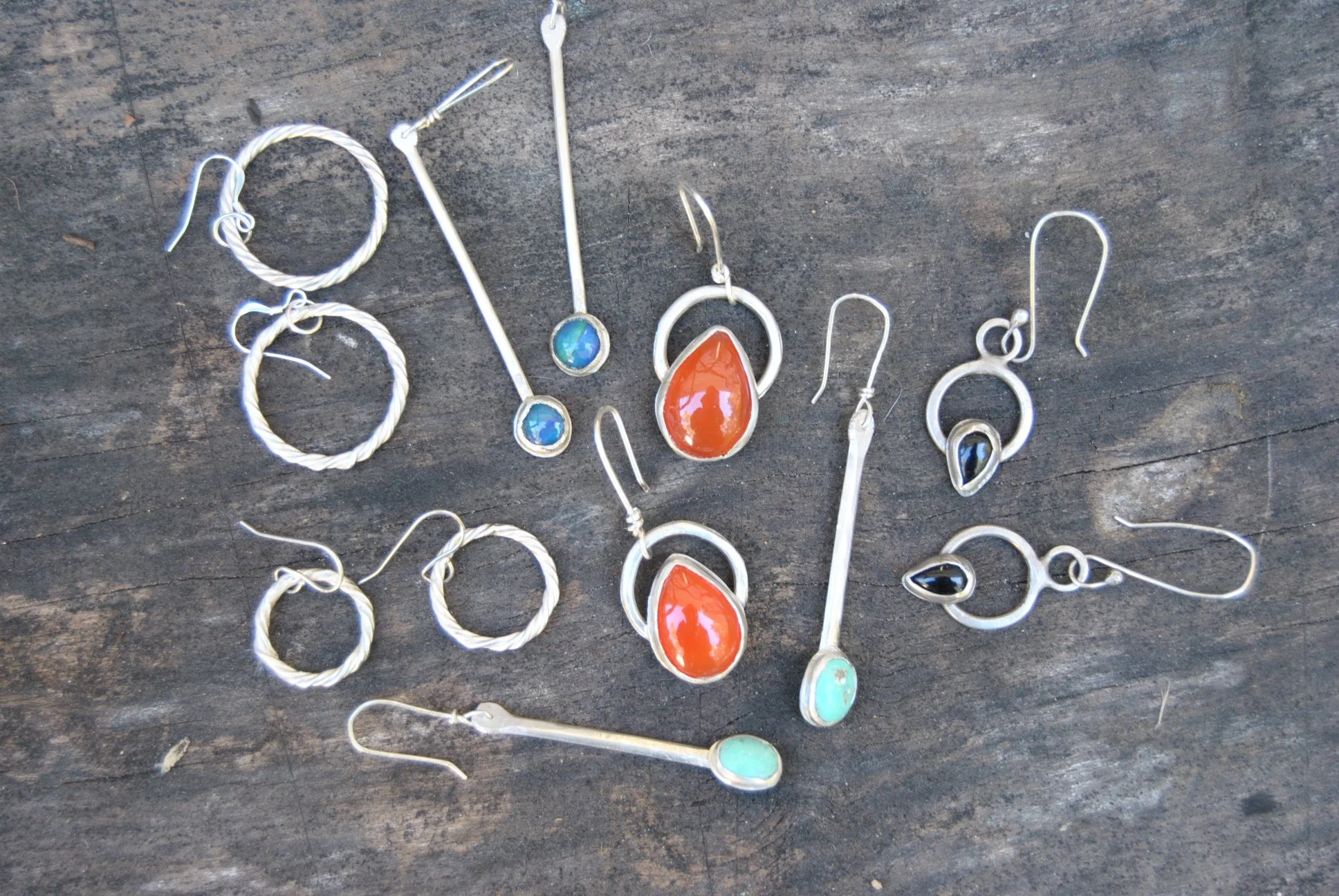 Set in Sterling Silver, Copper and Brass with Sterling Silver Huggie Clicker Hoops…