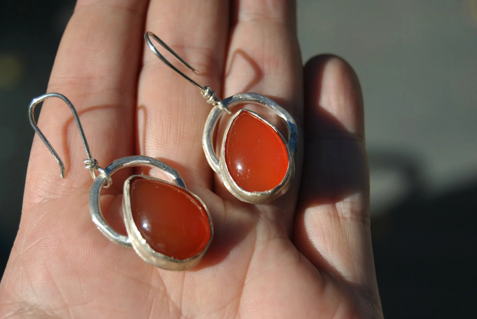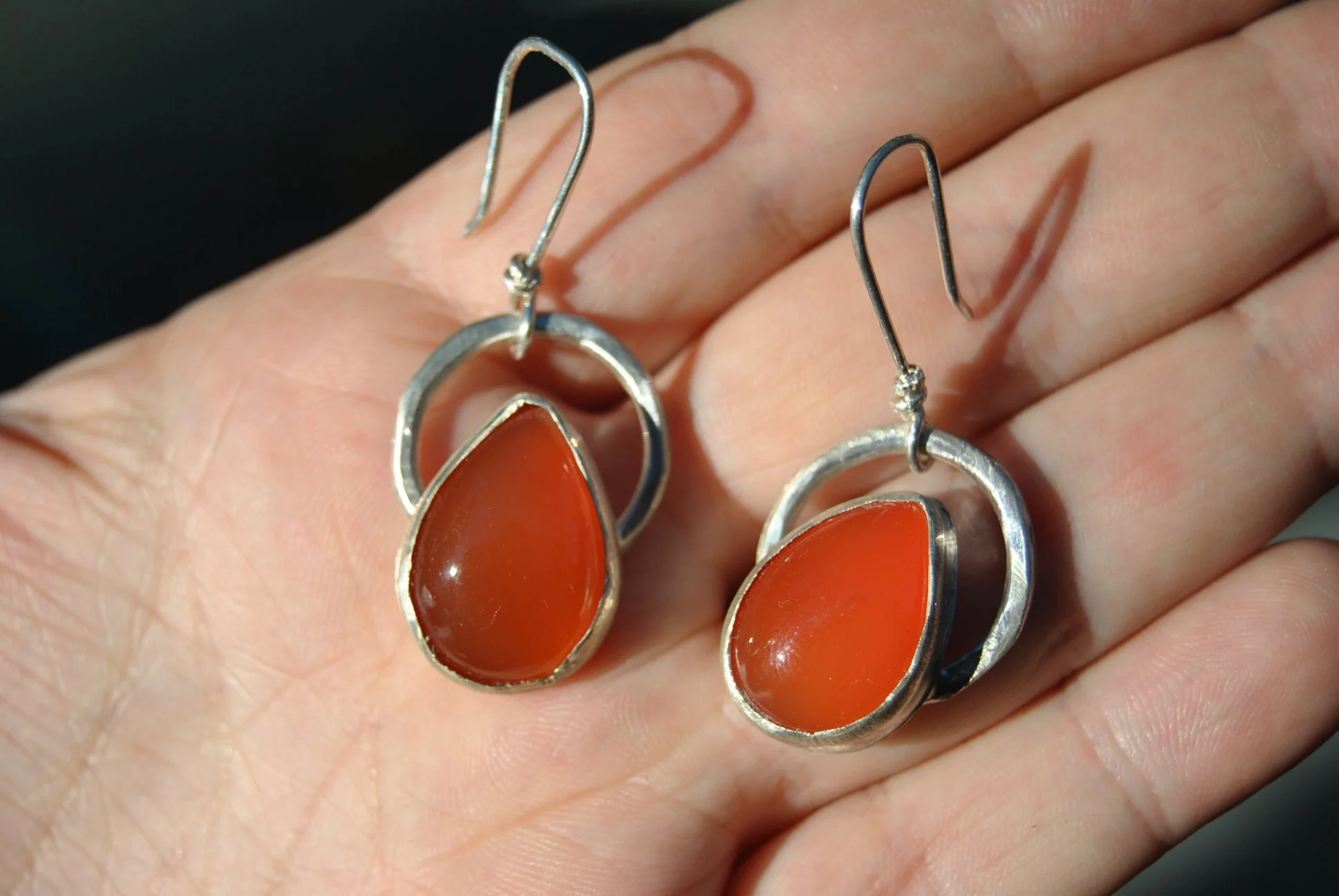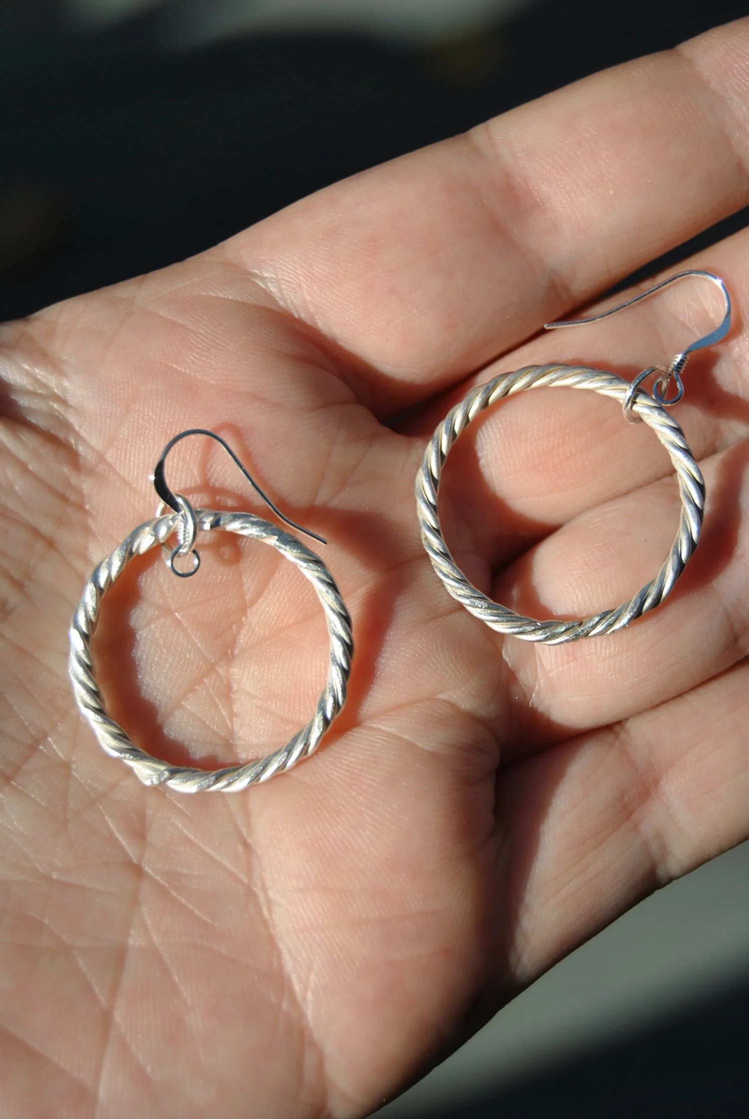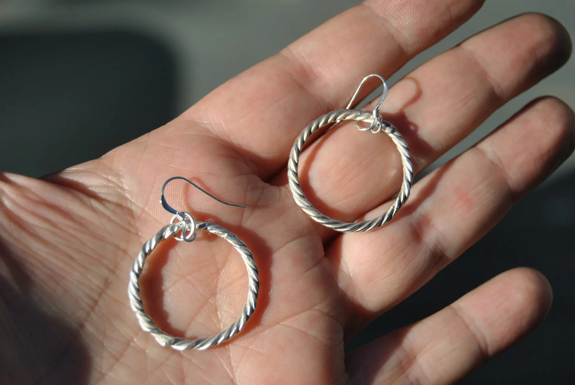 Set in Sterling Silver, Copper and Brass with Sterling Silver Huggie Clicker Hoops…